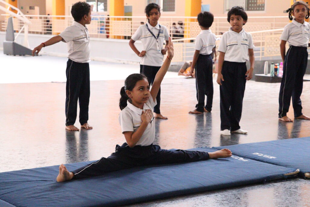 playgrounds and professional coaching, students participate in both individual and team sports, learn healthy competition, and imbibe values of sportsmanship and fair play. Some of the games offered are : Athletics , Basketball, Football, Cricket, Skating, Archery, Volleyball, Badminton, Kho-Kho, Silambam, Karate and Yoga.