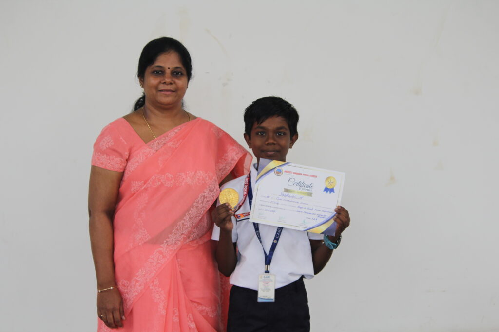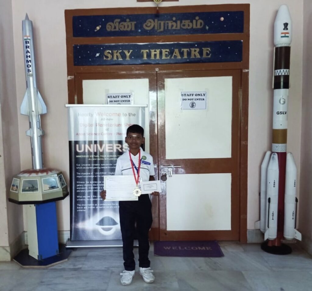 Master Hemanth Krishna A.R of Class VI secured 1st place & bagged a ₹2000 cash prize in the Maths Talent Test conducted by Anna Science Planetarium, Tiruchirappalli.